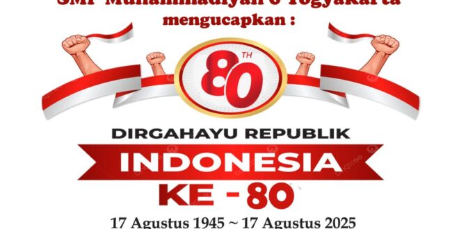 Yogyakarta – Ahad, 17 Agustus 2025, SMP Muhammadiyah 6 Yogyakarta menyelenggarakan Upacara Pengibaran Bendera Merah Putih dalam rangka memperingati HUT Kemerdekaan Republik Indonesia ke-80. Kegiatan berlangsung khidmat di Aula sekolah dengan diikuti seluruh guru, karyawan, dan peserta didik.